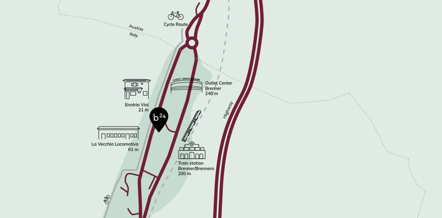 From the north: Take the Brenner North exit and follow the state road for another 1.5 km until you reach the village. At the roundabout, take the first exit and go past the Outlet Centre, after which you will find yourself in front of the hotel.