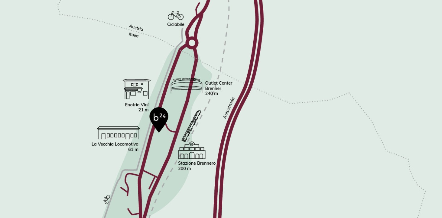 L’hotel si trova a 150 metri ovvero 2 minuti di passeggiata dalla stazione dei treni del Brennero ed è quindi comodamente raggiungibile a piedi.
